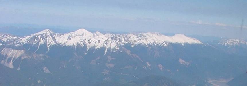 peaks at right. The pyramidal peak at left of centre is Shulaps Peak - I think - while Big