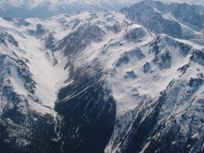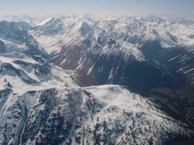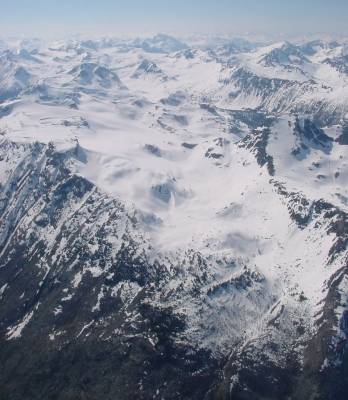 upper Bridge River Valley; the Lillooet Crown icefields can be seen